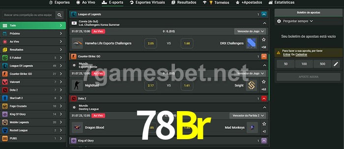 A aposta 78Br oferece aos jogadores a experiência mais conveniente de apostas em eSports!